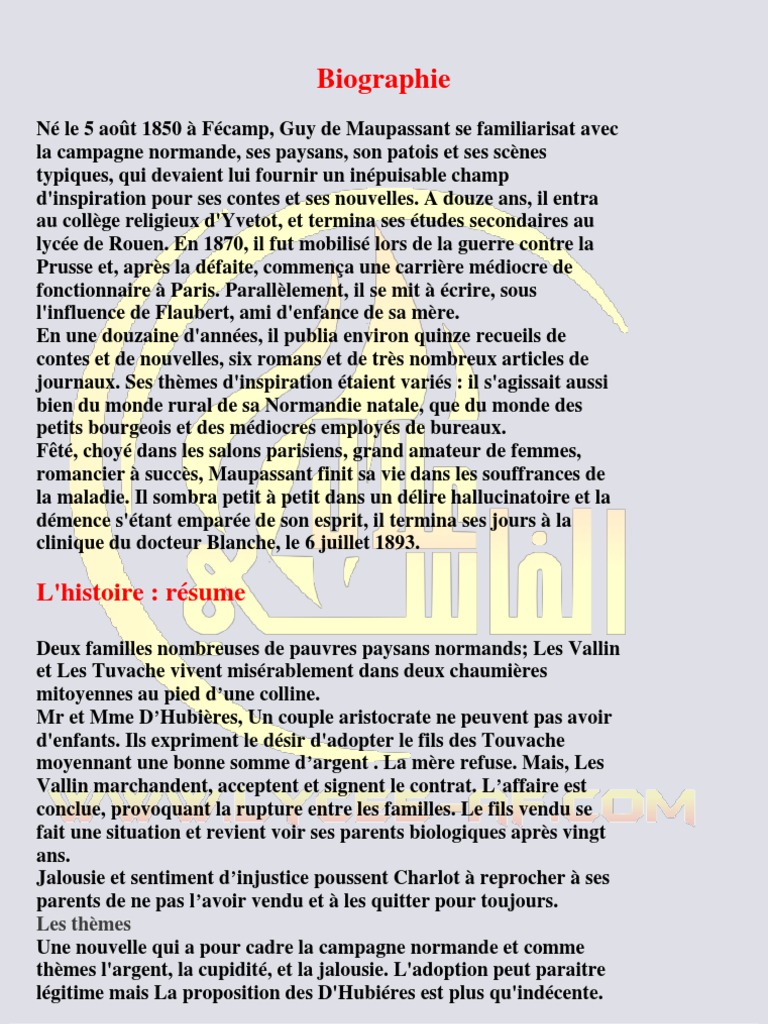 | Title: Bonjour Je Dois Pleter Un Resumer De La Nouvelle Aux Champs De Guy De Maupassant Est Ce Que Nosdevoirs Fr Aux Champs Guy De Maupassant Rsum |